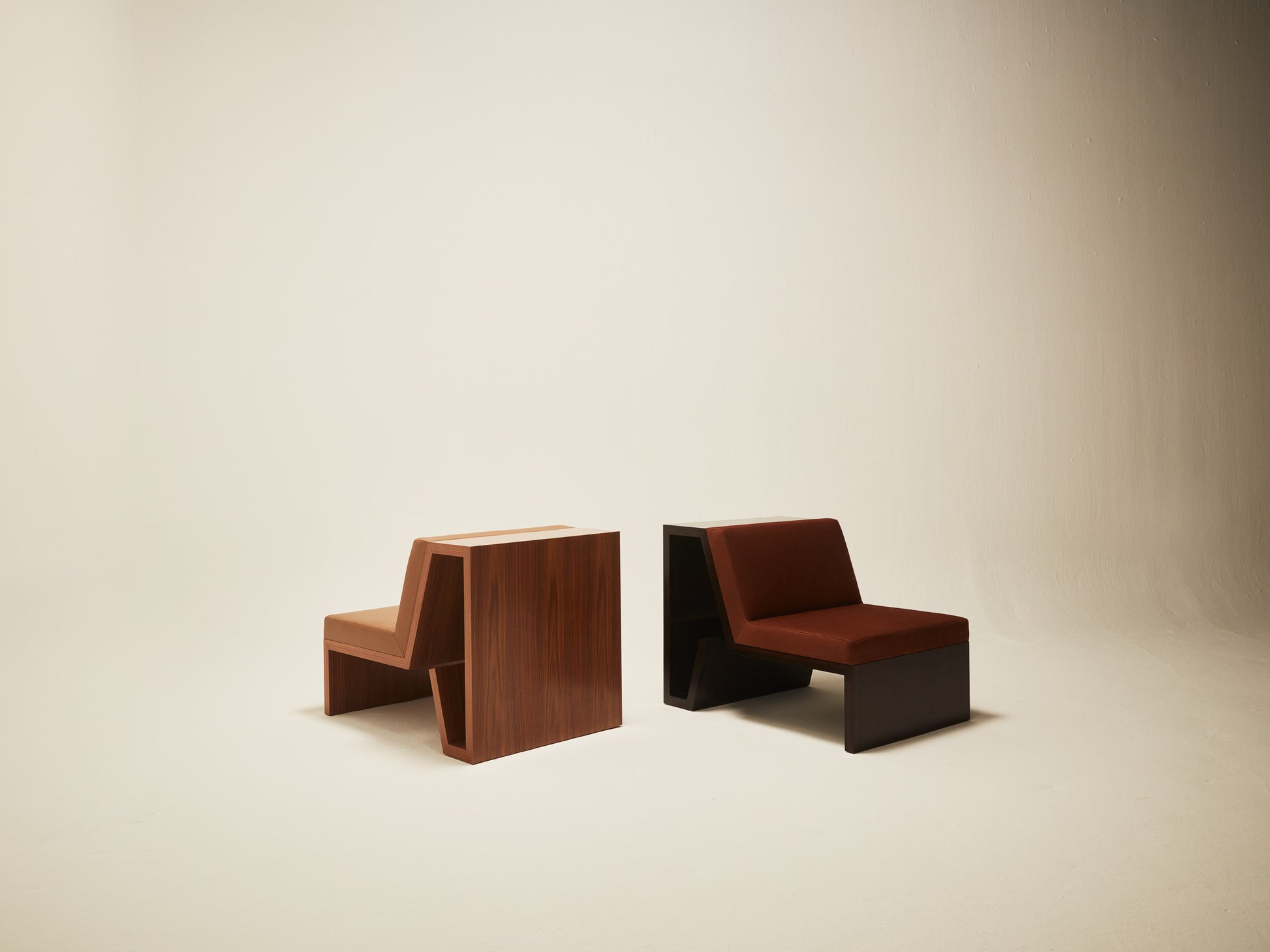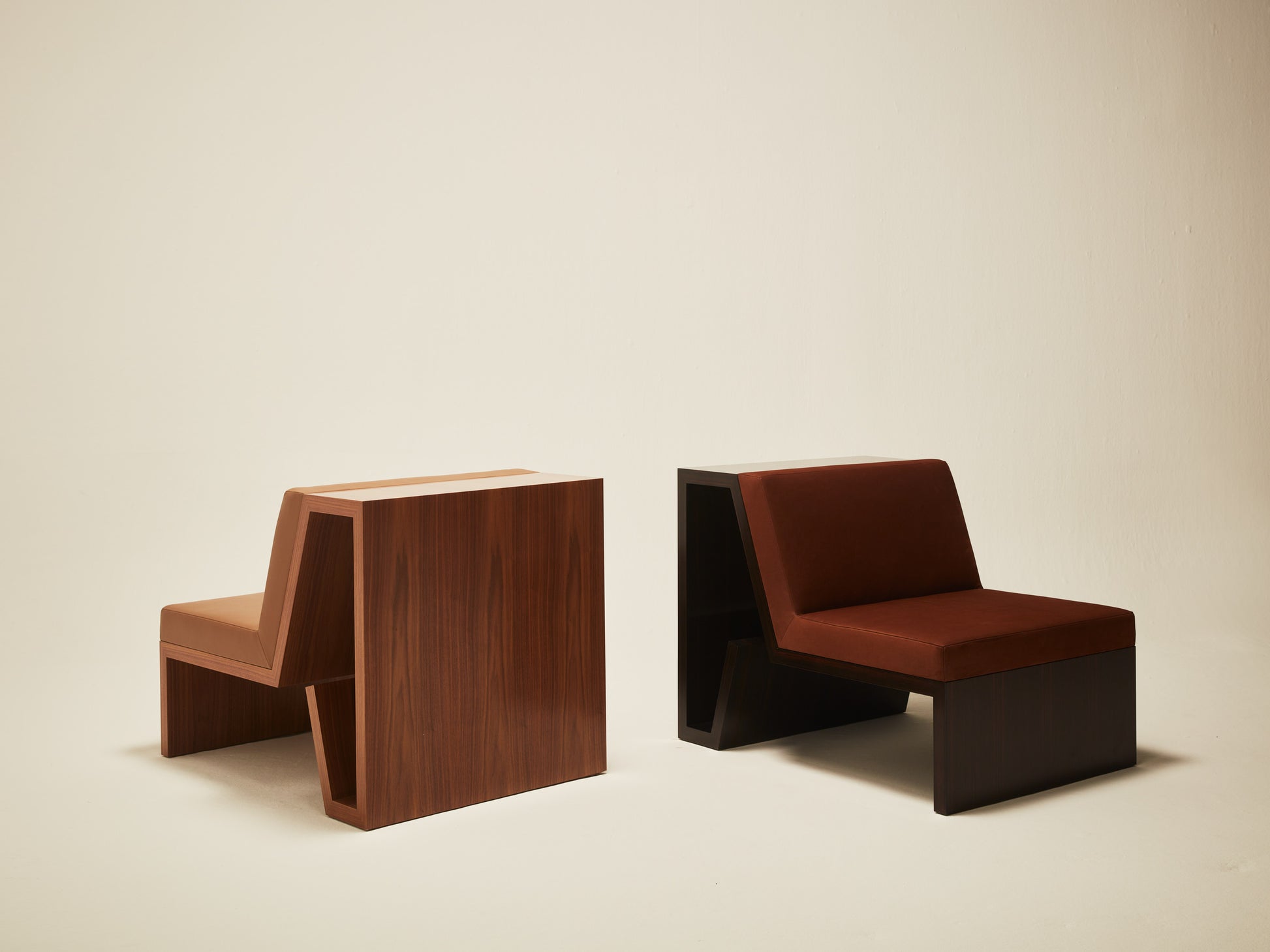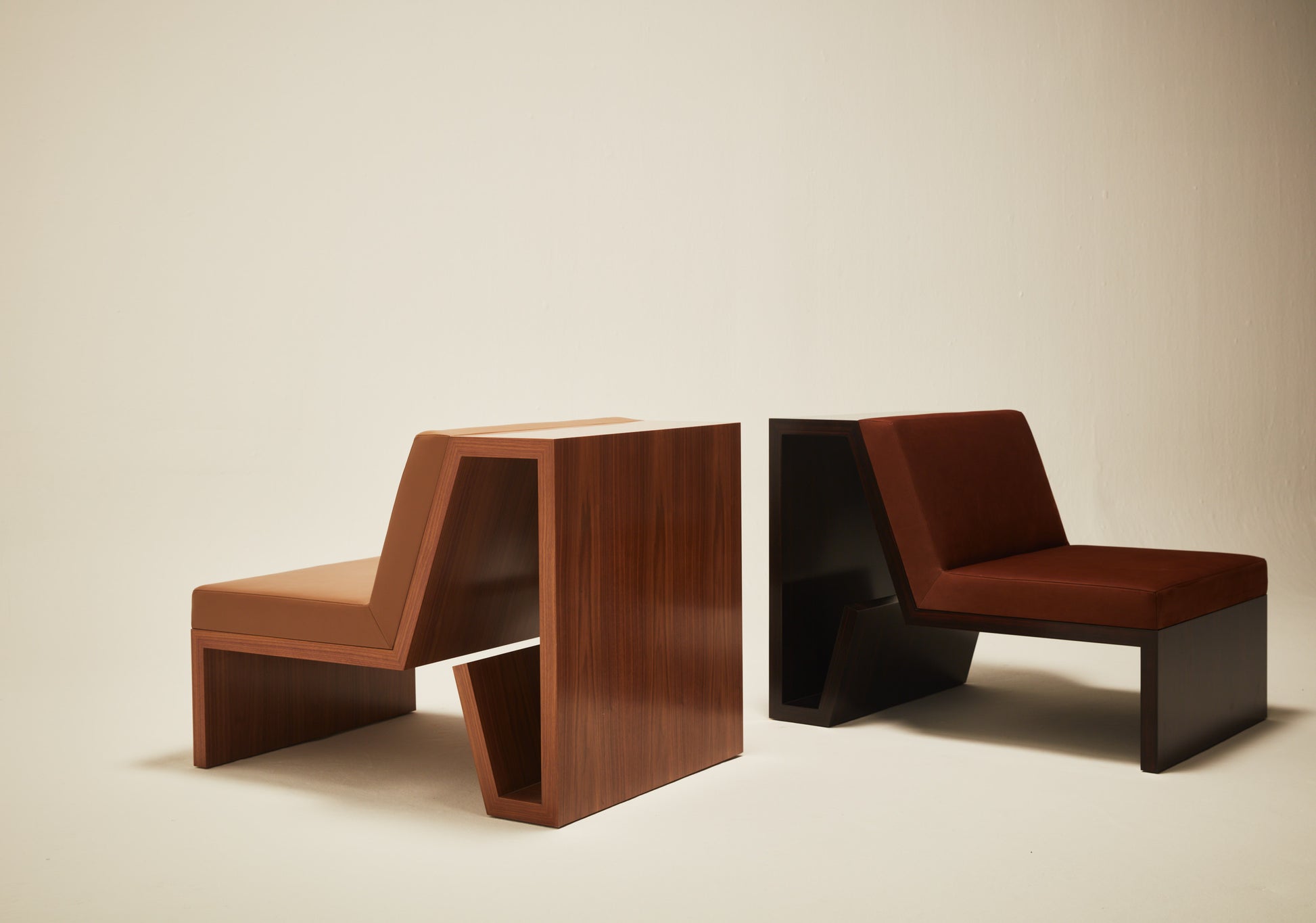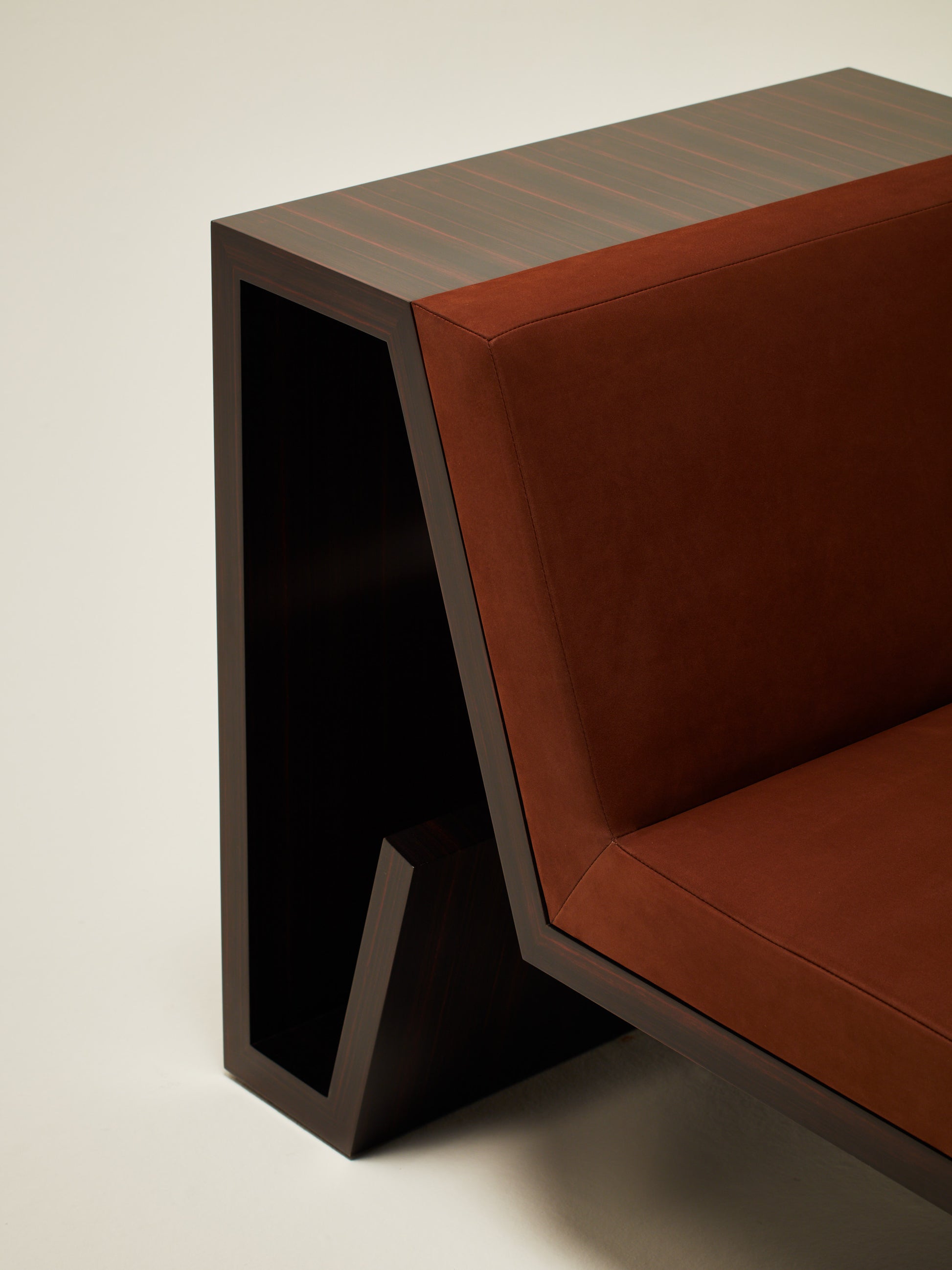 The Continuous Chair by Atelier FM—handcrafted in Macassar Ebony wood veneer and wrapped in rich nubuck leather—embodies sculptural clarity and material sophistication.