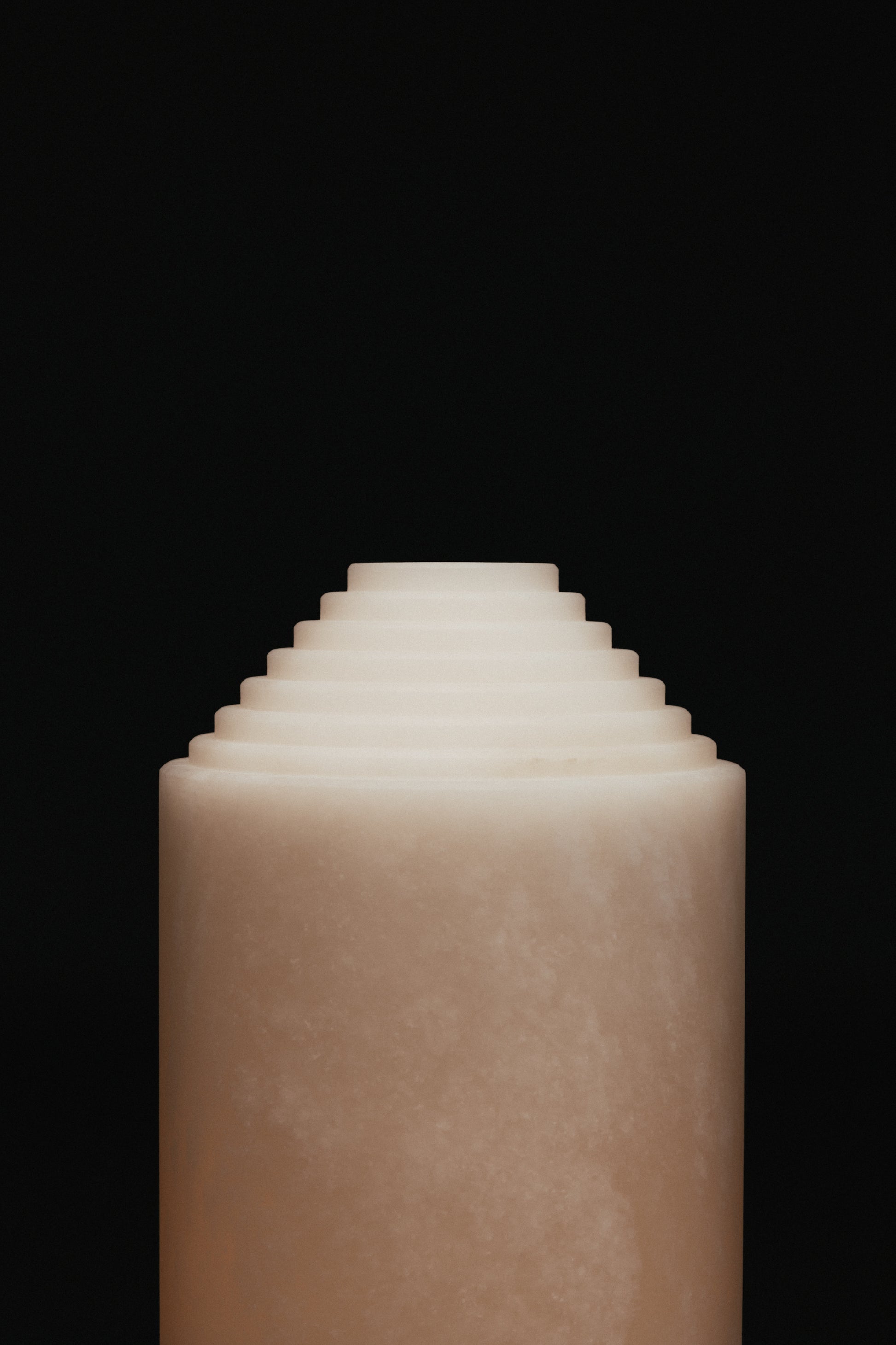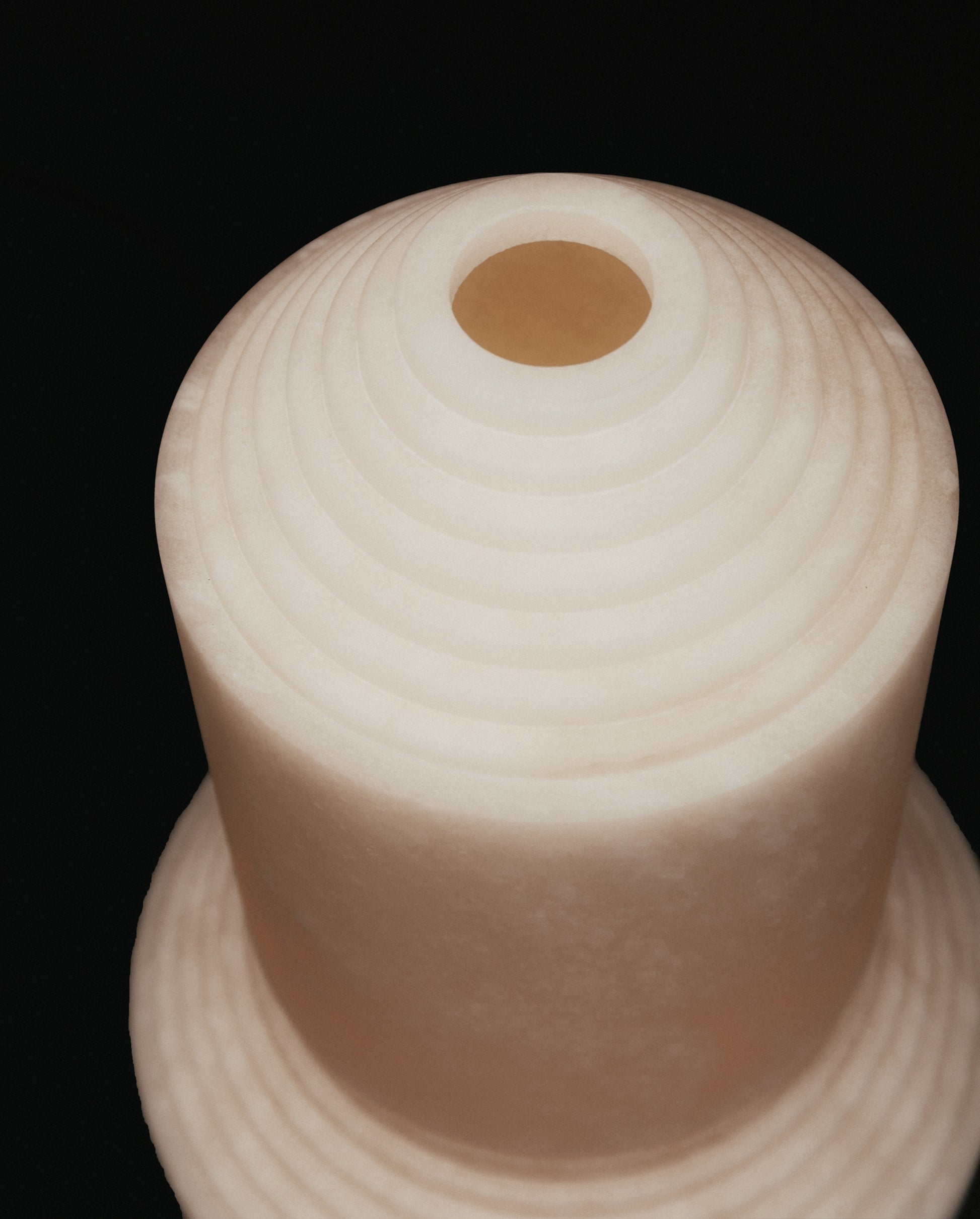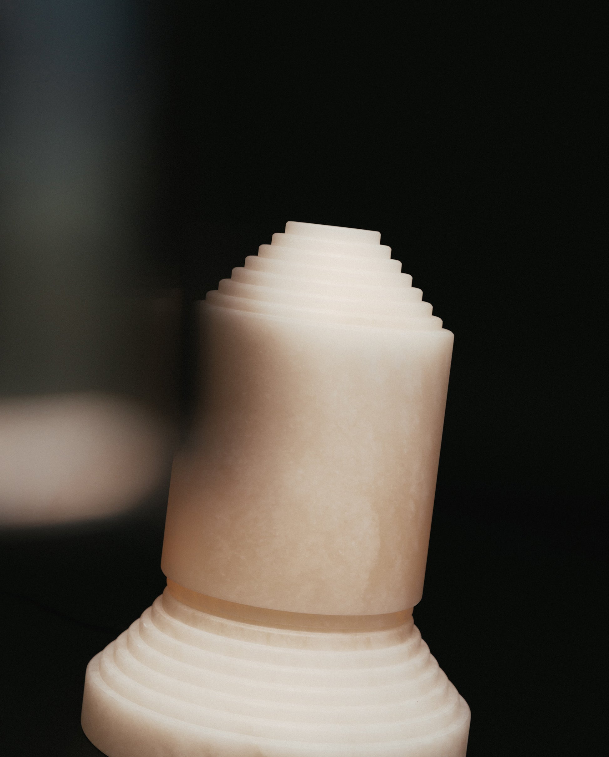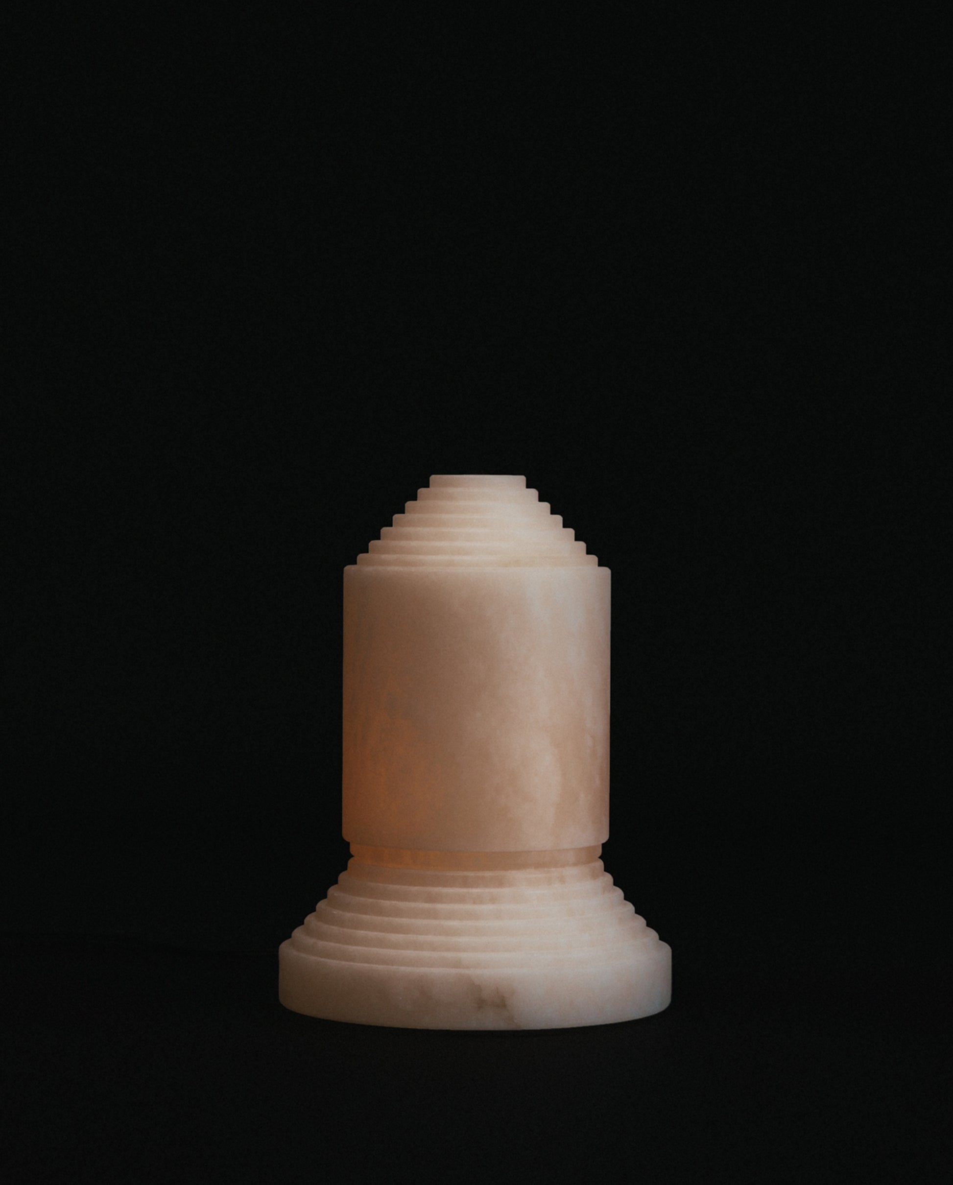Babel is both an alabaster sculpture and a table lamp. This piece glows like candlelight and is a striking mood-setter.