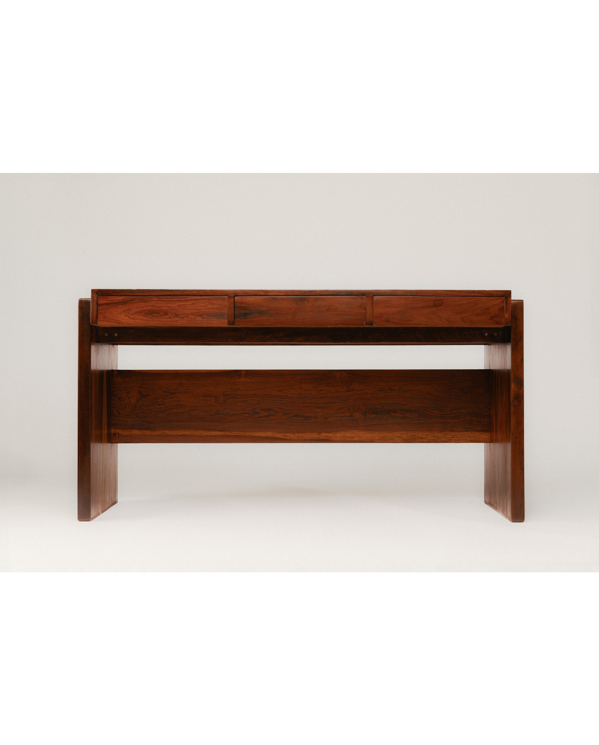 This desk was designed and produced by Joaquim Tenreiro Moveis e Decoração for the Bloch Editores S.A. Building in the 1960s. This piece's design is pure and simple, focusing on functionality and exposing the beauty of its materiality.