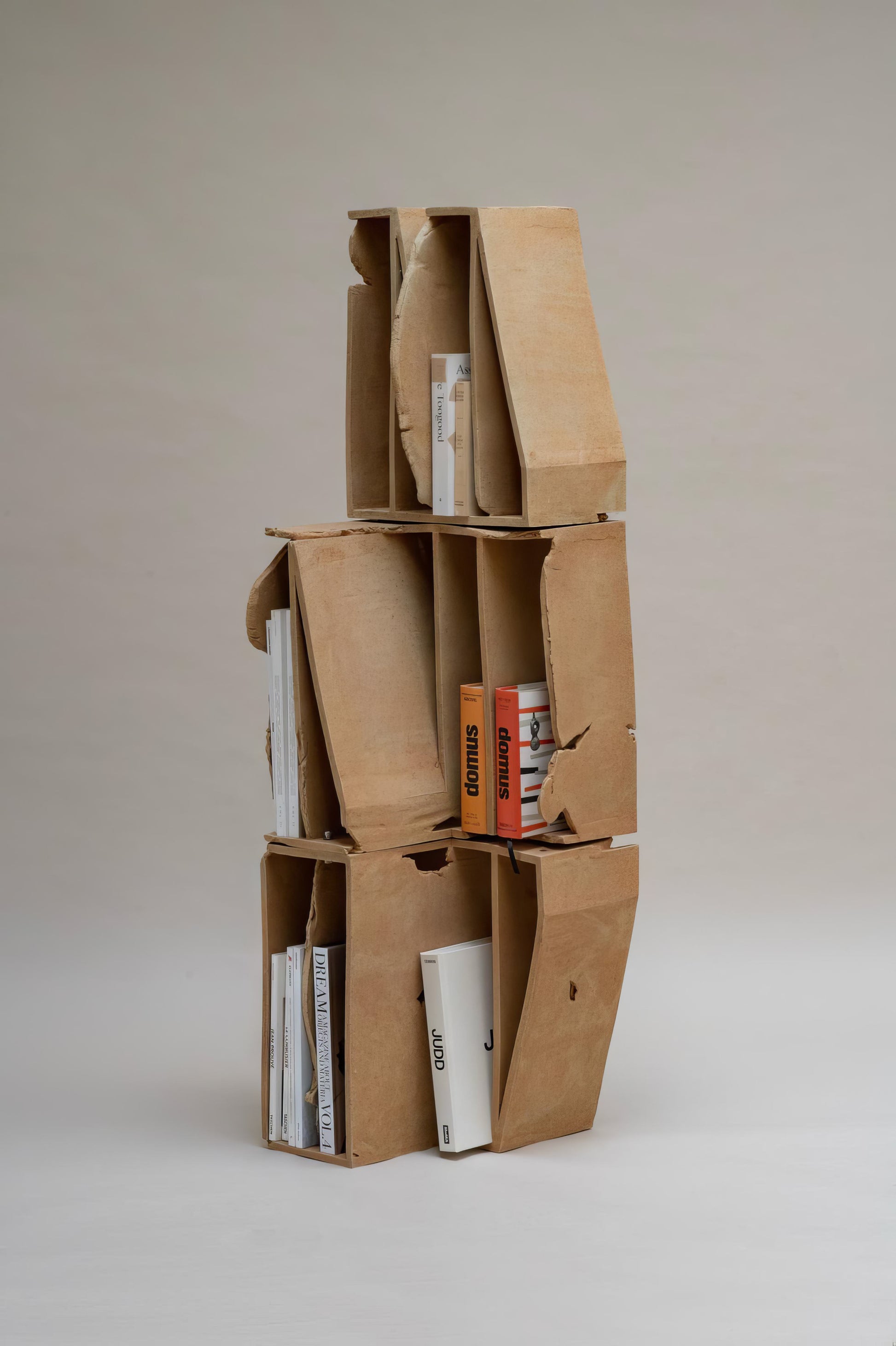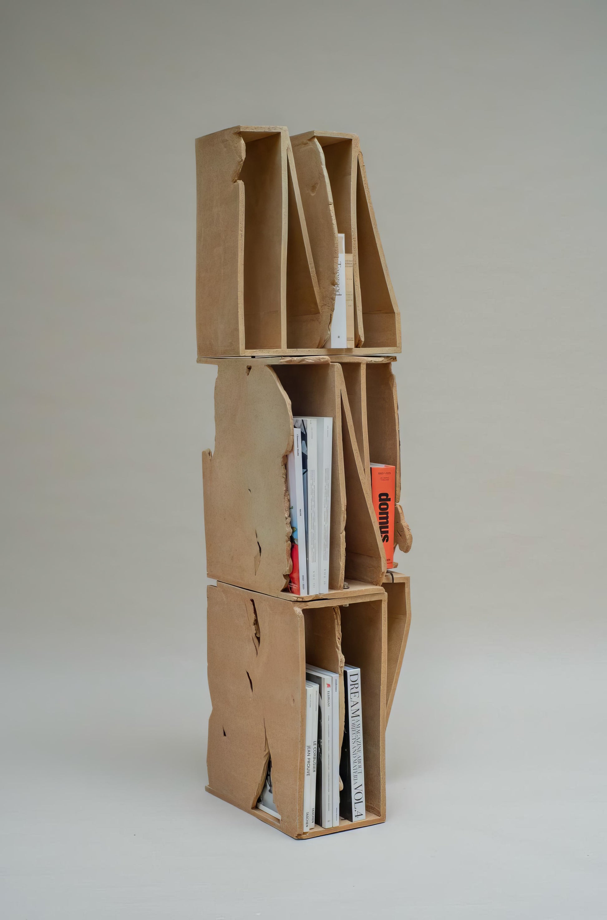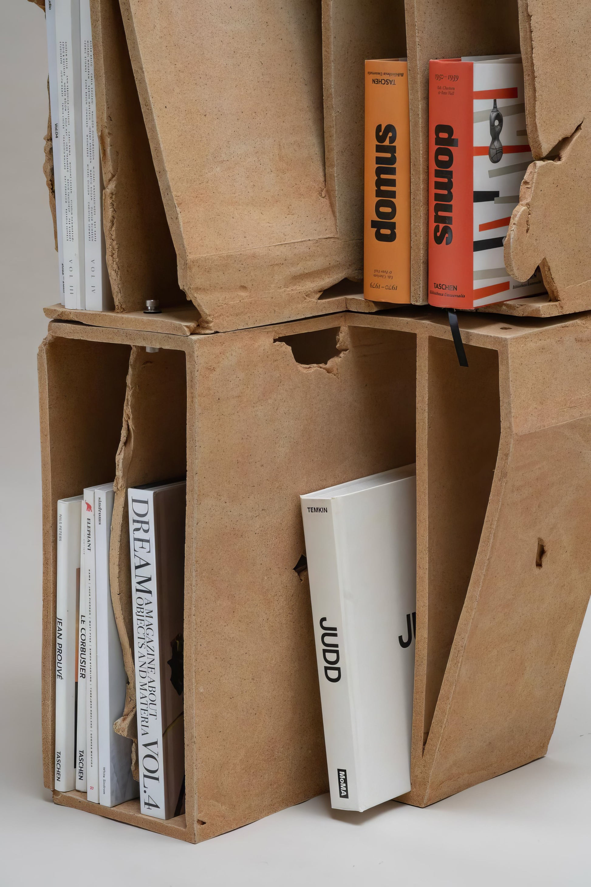 A sculptural fired clay bookshelf created by Turbina Studio, inspired by the concept of movement and the road. Developed during a residency in California, the piece explores themes of travel, hospitality, and spatial experience, drawing reference from Interstate 405.