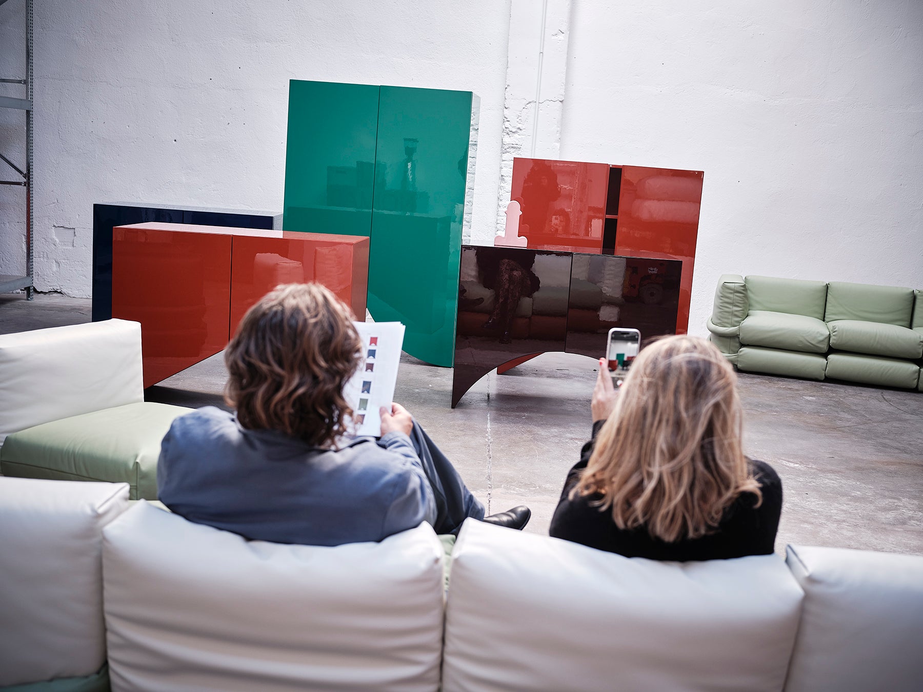Bridges is a collection of cabinets designed by Muller Van Severen that echoes the shapes of actual bridges. This collection is a playful twist on Muller Van Severen's "Waves" vases where color and shapes transcend functionality.