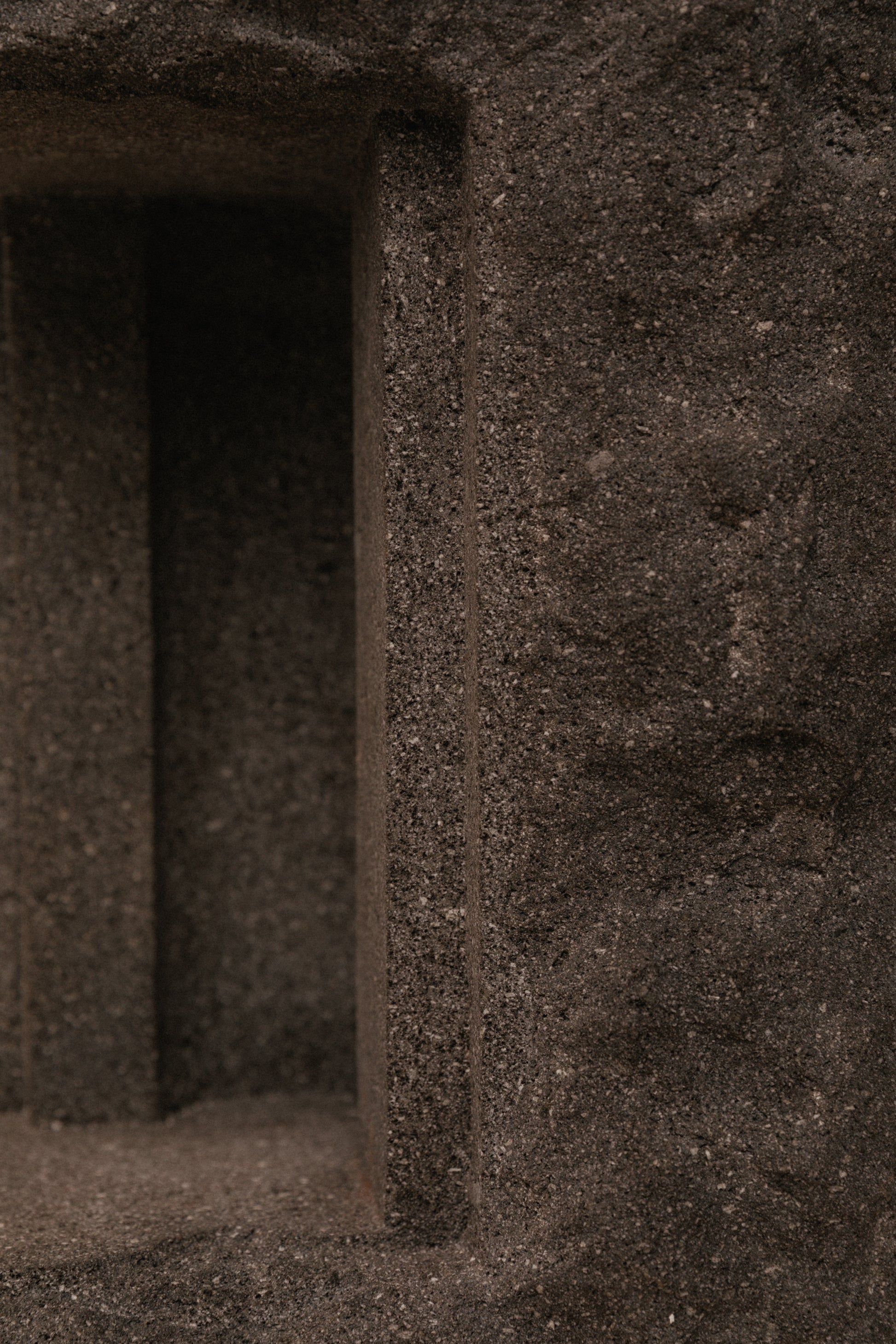 Designed by Peruvian architect and designer, Rafael Freyre, this side table is a unique piece that has been hand-sculpted from a single block of sourced volcanic stone from Arequipa in Peru.