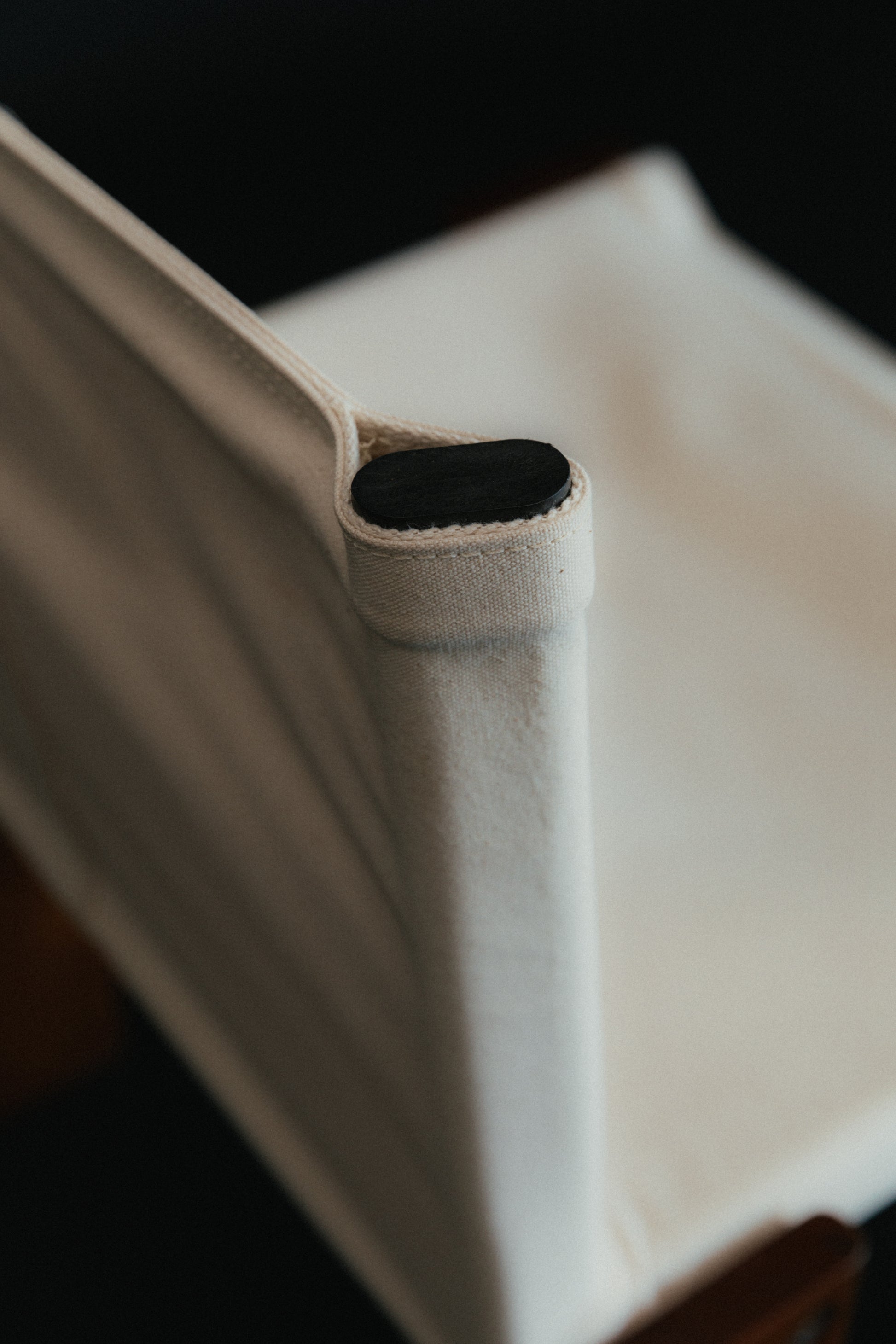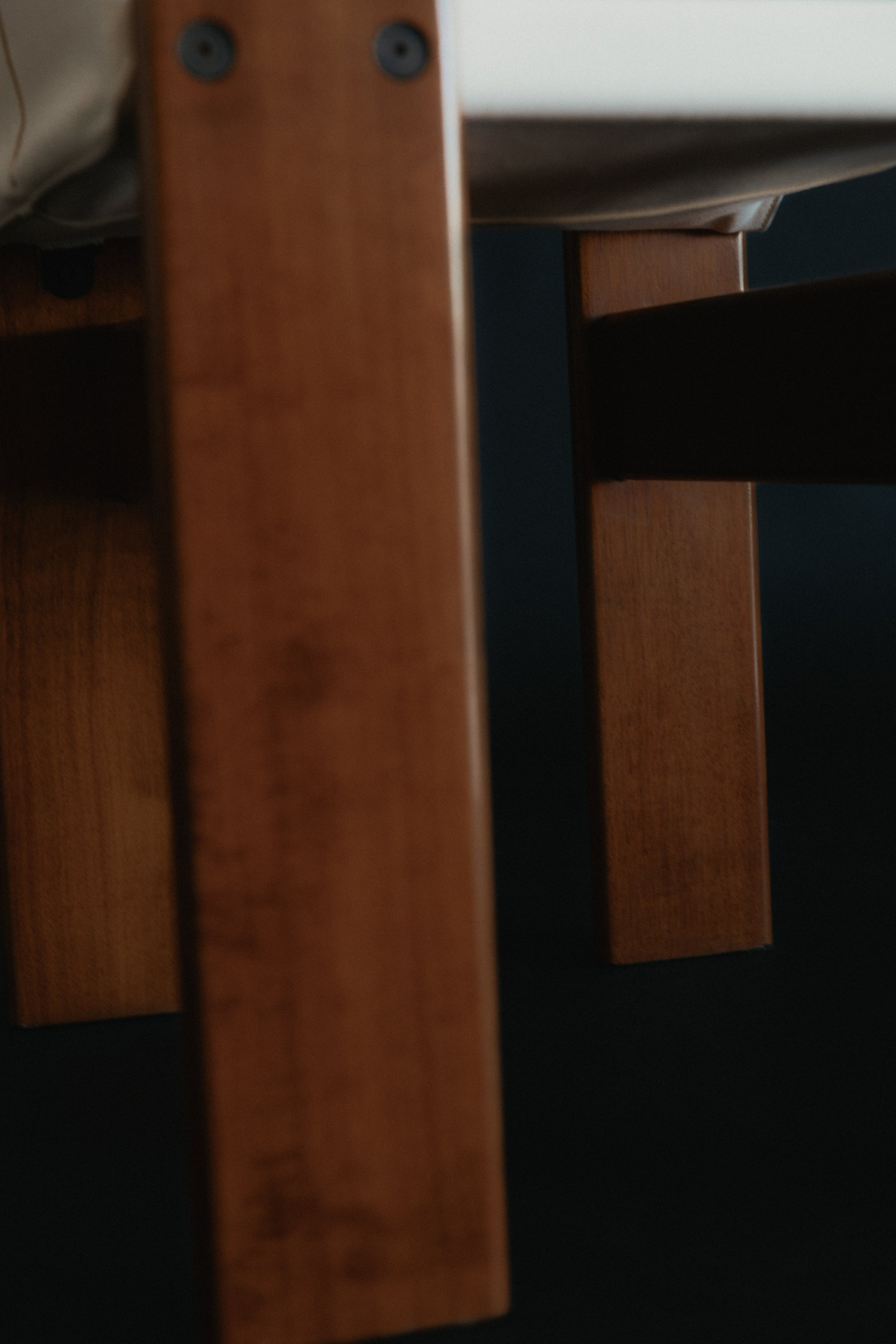 The monk chair was designed by Afra & Tobia Scarpa for Molteni in the 1970s. This piece is beautifully constructed and the fabric for the back rest and seat stretches like a painting canvas around the chair's frame.
